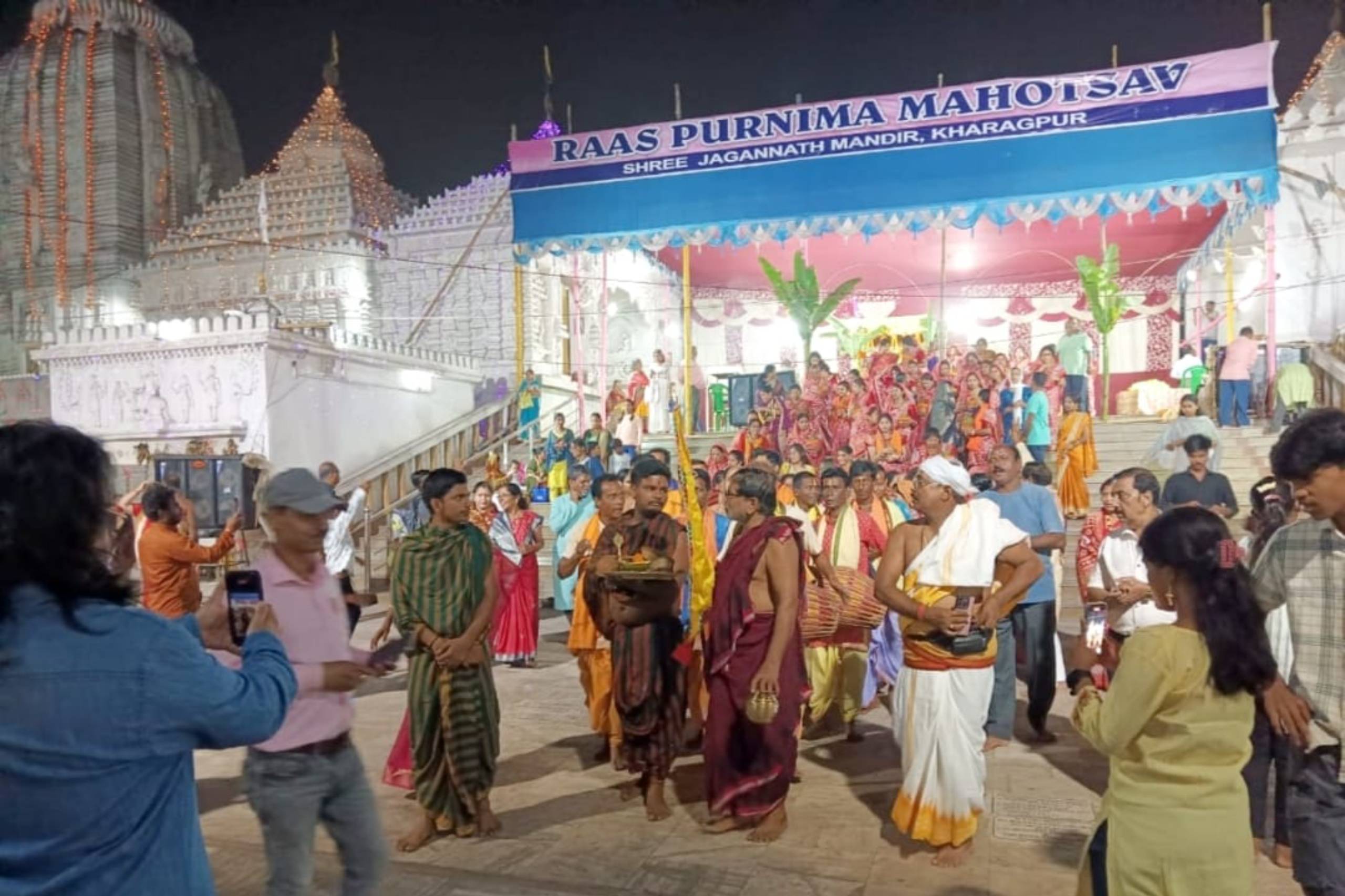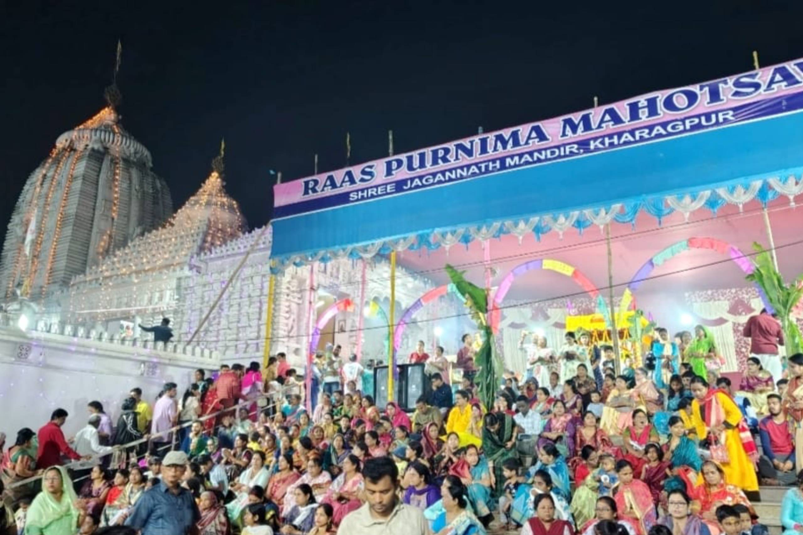 In the month of November in every year Kartik purnima Astam Prahar Harinam & free mahaprasad Seva is organized in which devotees all around Kharagpur participate. On this sacred day about 15 thousand devotees through in to temple complex to avail free Mahaprasadseva& participate in the harinam. Devotees also actively participate in the last day of Bhagabat saptaha.