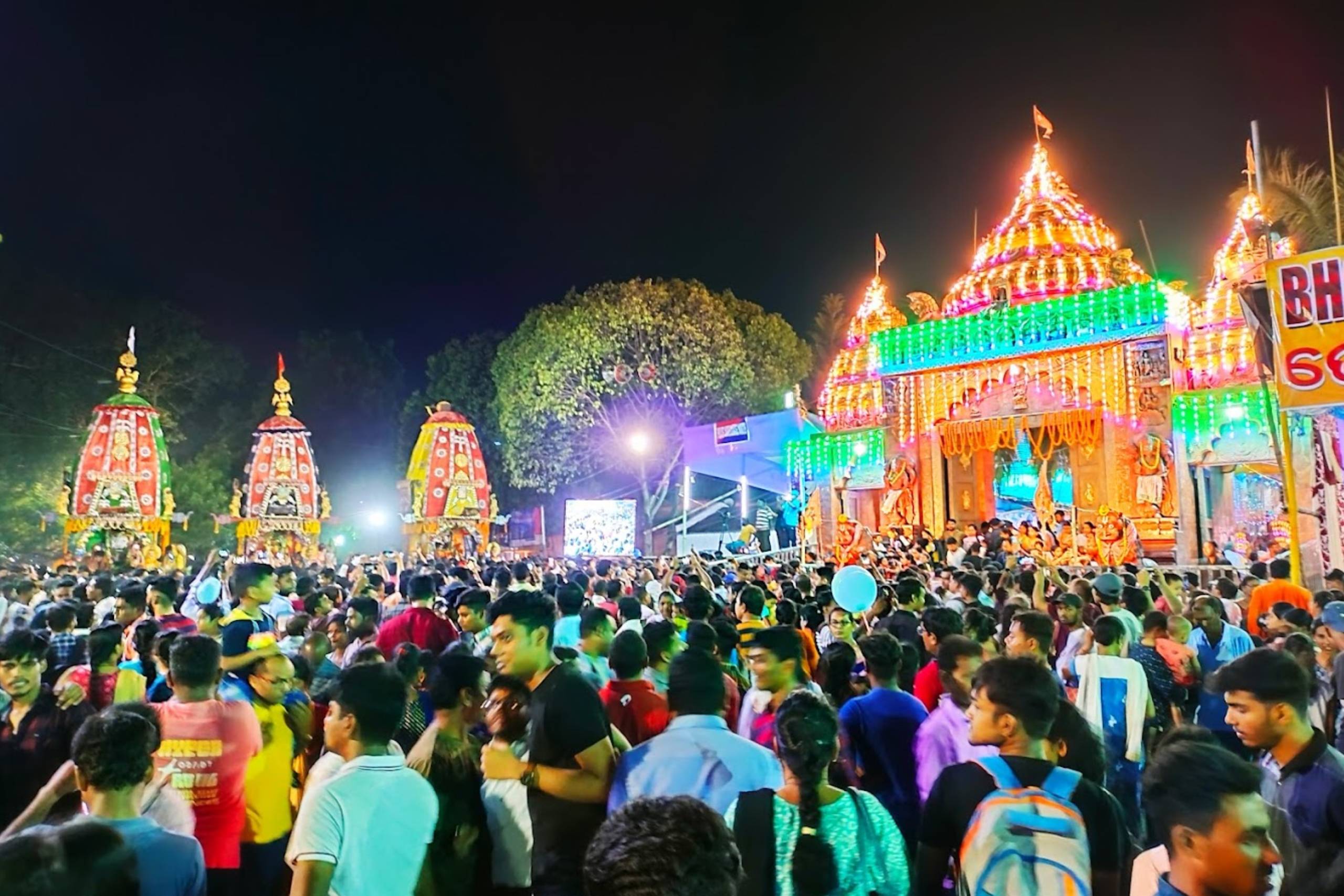 A grand mela is also being organized during RathYatra near the temple where lakh of people visited & enjoyed the mela. In addition to this various cultural programmes like odissi dance, Bharatnatyam, Kuchipudi, Vangraetc are being organized in every evening during RathYatra.